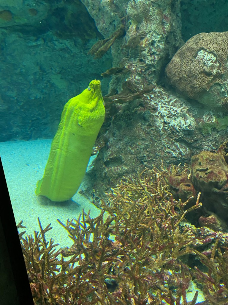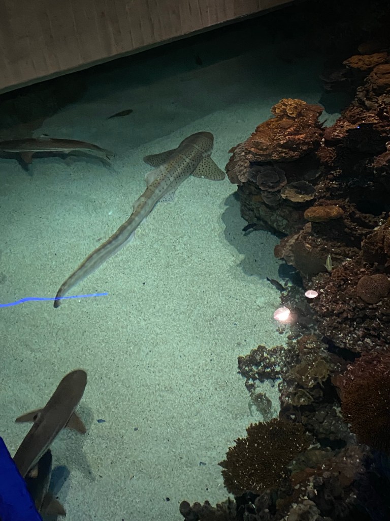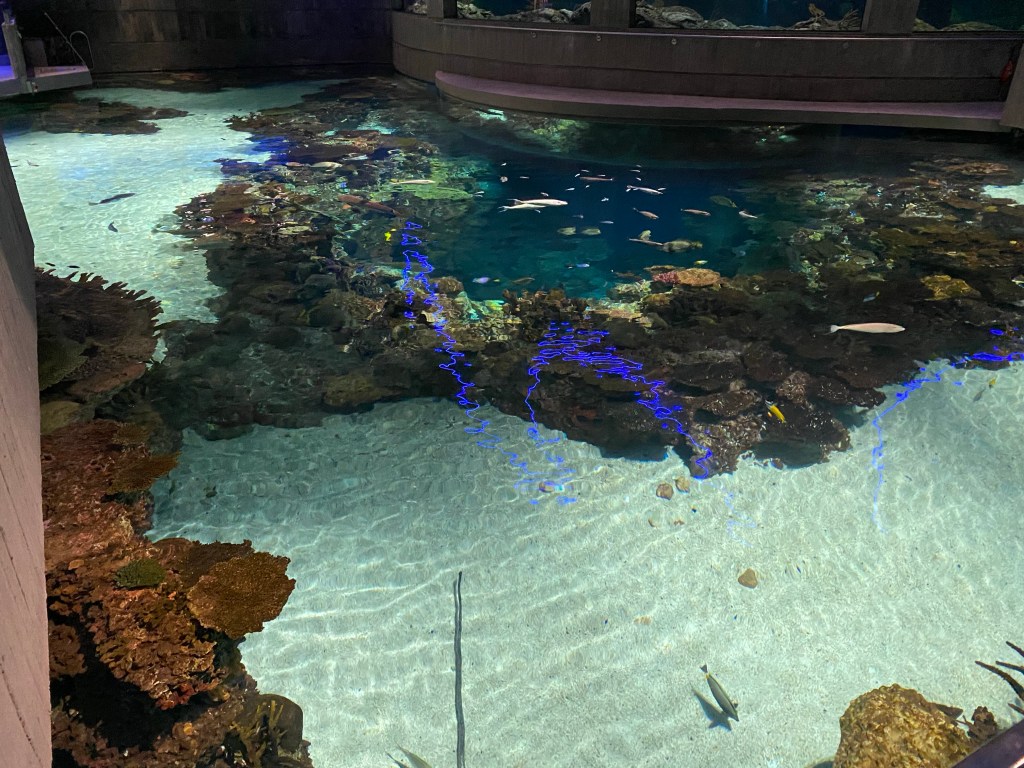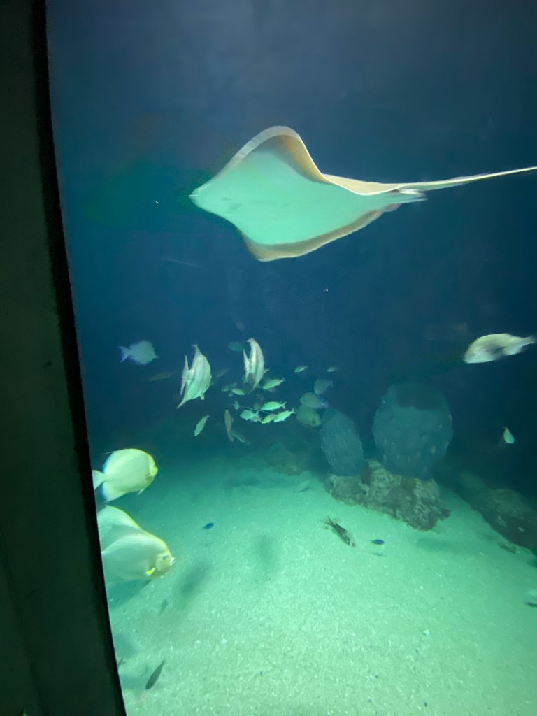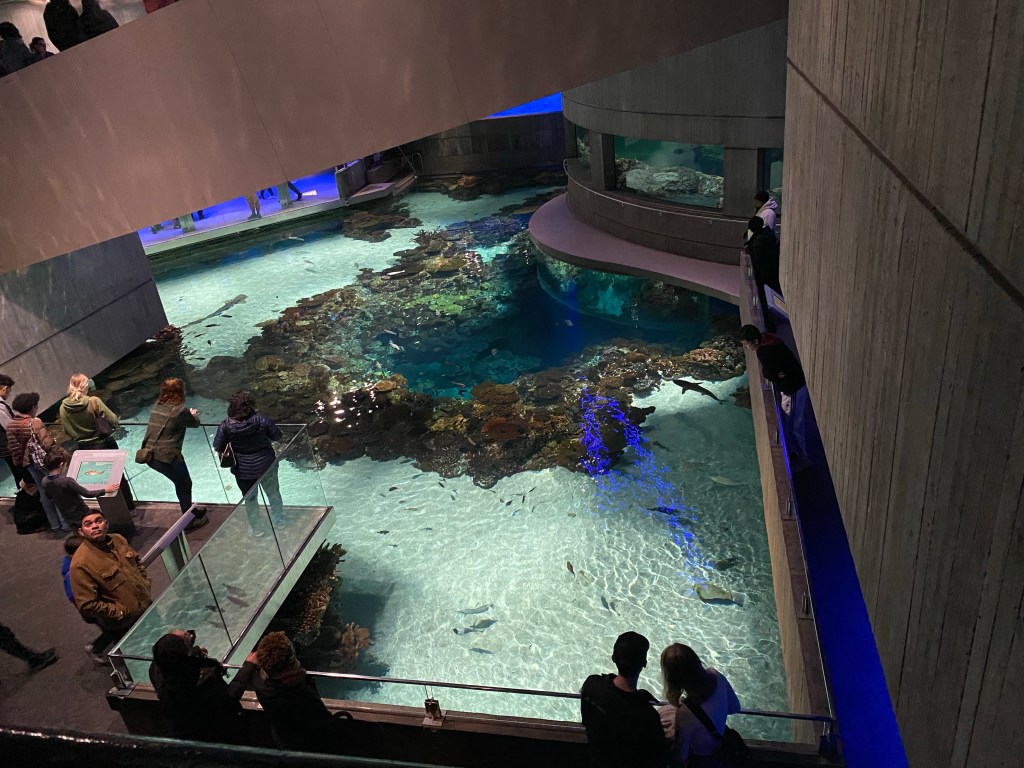 The unique thing about this aquarium compared to others was the multi story design. The aquarium covered four floors and had escalators going between them going up then a spiral ramp going down that let you see different levels of a coastal ocean.